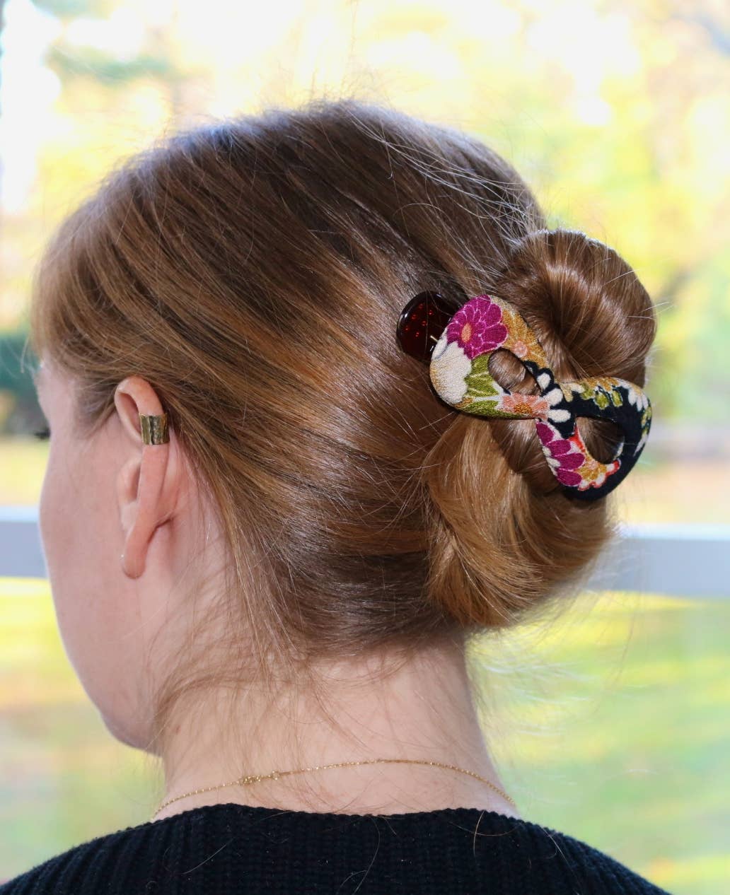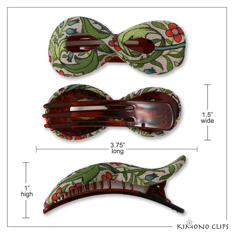 Infinity is a unique figure eight shaped clip best for medium volume hair. Floral clips come in assorted patterns and colors. We curate a balanced selection of colors and patterns for your order. Fine to Medium volume hair