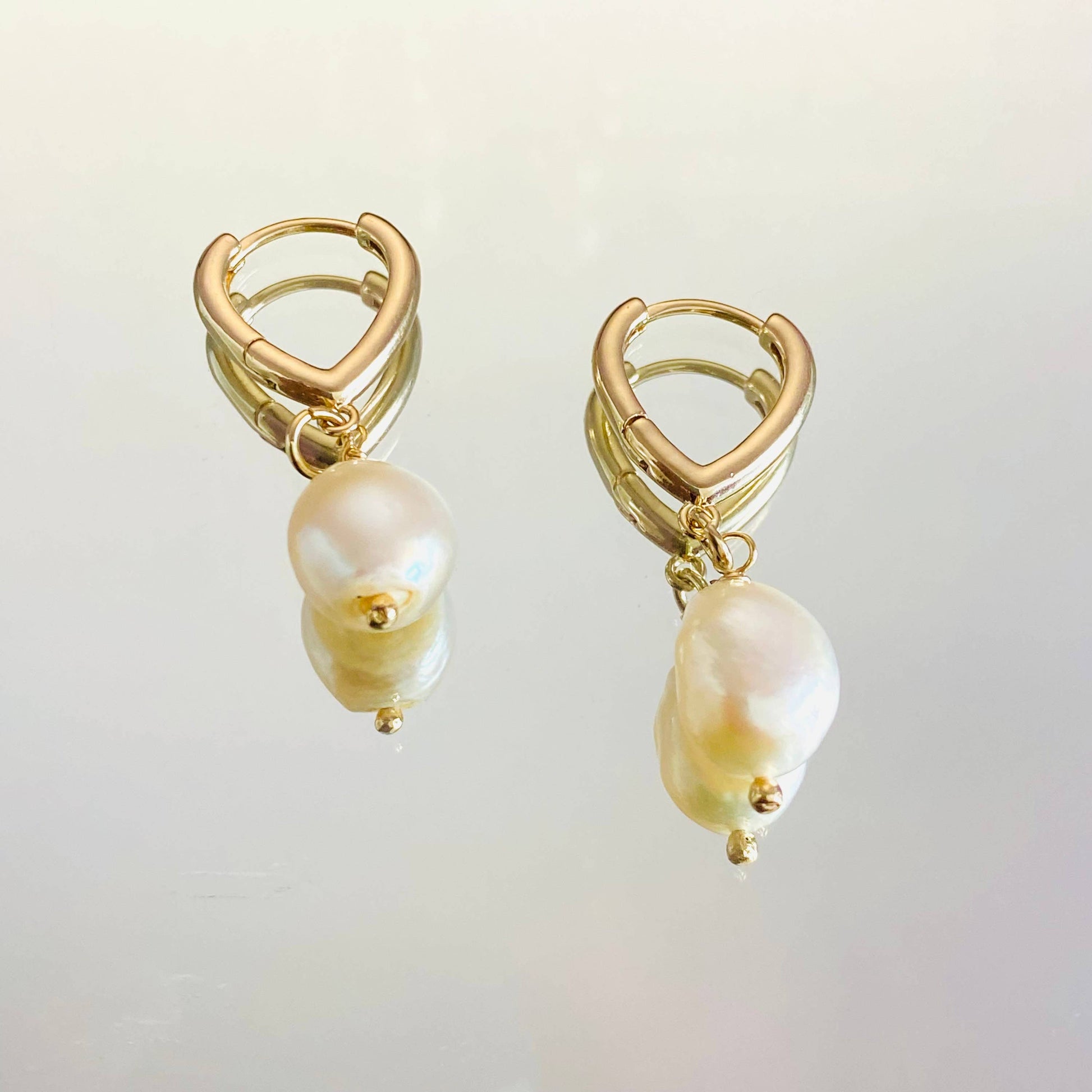 Freshwater Pearl Earrings, Pearl Huggie Hoops, Baroque Pearl