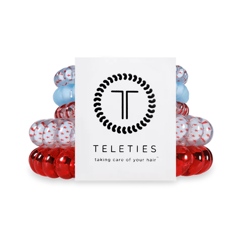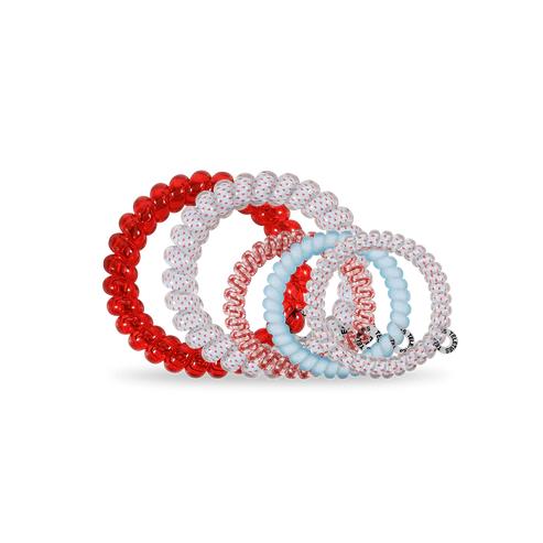 Hold your hair in place with ease and style! Oh my stars! Mix Pack Hair Ties in red, white and blue offer a strong grip without damage, doubling as a stylish bracelet when not in use. Your new favorite hair essentials all year round.